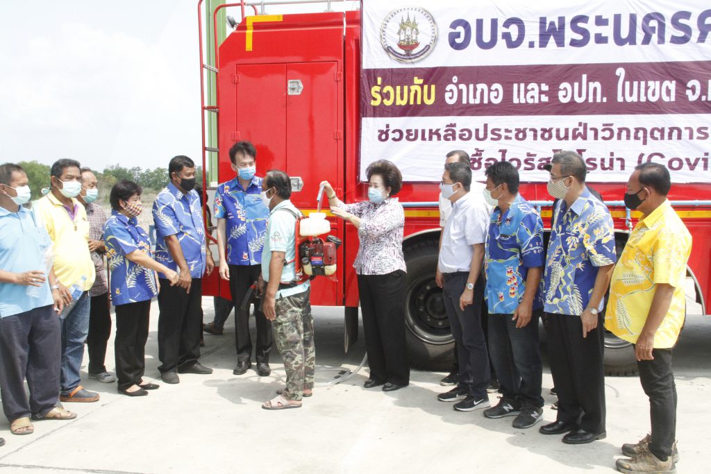 อบจ.พระนครศรีอยุธยา แจกจ่ายน้ำยาฆ่าเชื้อไวรัสโควิด19 ให้ประชาชน
