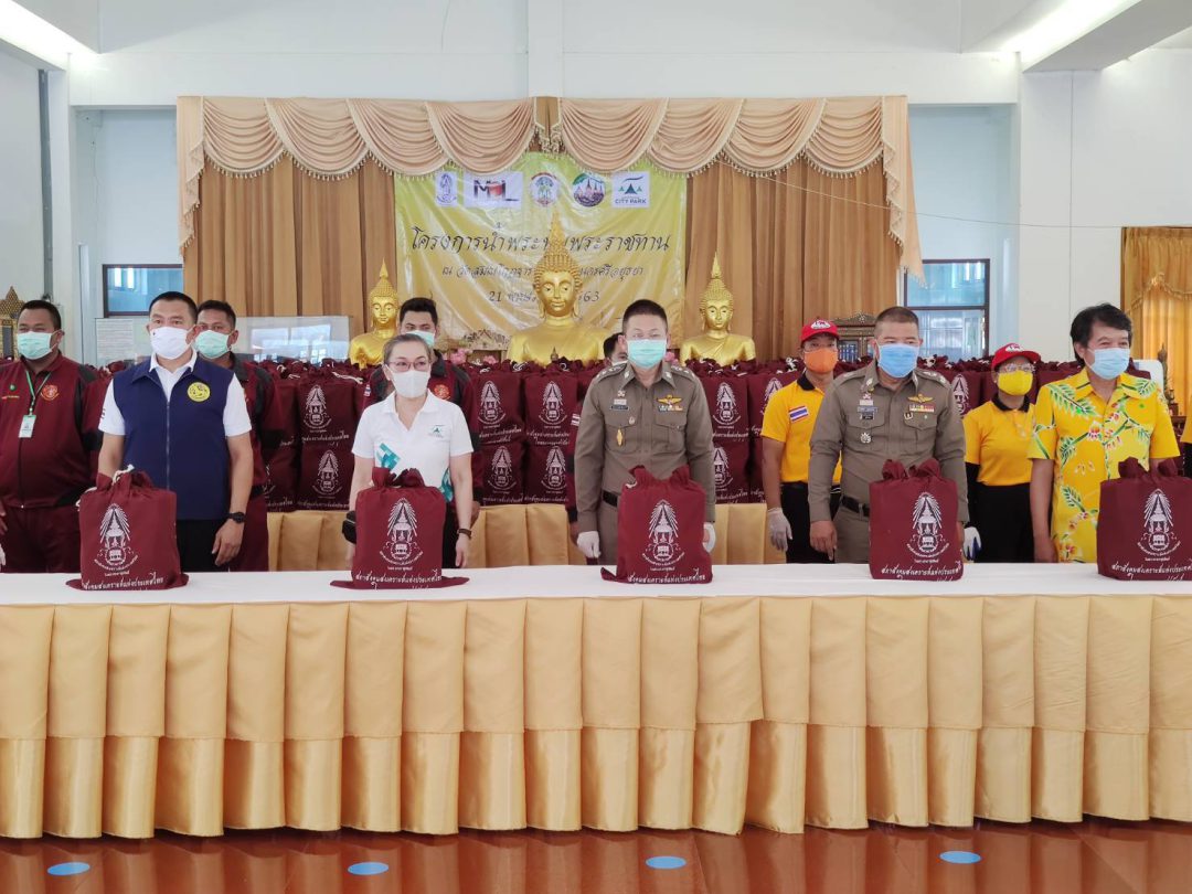 ร่วมกันมอบสิ่งของ (ถุงยังชีพ, อาหารจากโรงครัวพระราชทาน ฝีมือ การทำอาหารของเชฟจิตอาสา ในโครงการน้ำพระทัยพระราชทาน สภาสังคมสงเคราะห์แห่งประเทศไทย ในพระบรมราชูปถัมภ์ฯ และมอบน้ำดื่มจากอยุธยาซิตี้พาร์ค ให้กับประชาชนในชุมชนวัดสมณโกฏฐาราม ต.ไผ่ลิง อ.พระนครศรีอยุธยา จ.พระนครศรีอยุธยา ที่ได้รับผลกระทบจากสถานการณ์การแพร่ระบาดของเชื้อไวรัสโควิด-19 จำนวน 500 ชุด นอกจากนี้ ยังได้เดินทางไปมอบถุงยังชีพให้กับผู้ป่วยติดเตียงในชุมชนวัดสมณโกฏฐารามอีกด้วย
