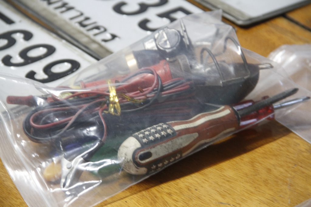 จับหนุ่มขับรถเจอด่านตำรวจหลบเขาปั๊มน้ำมันตรวจค้นในรถพแผ่นป้ายทะเบียนรถยนต์กว่า 10 แผ่น