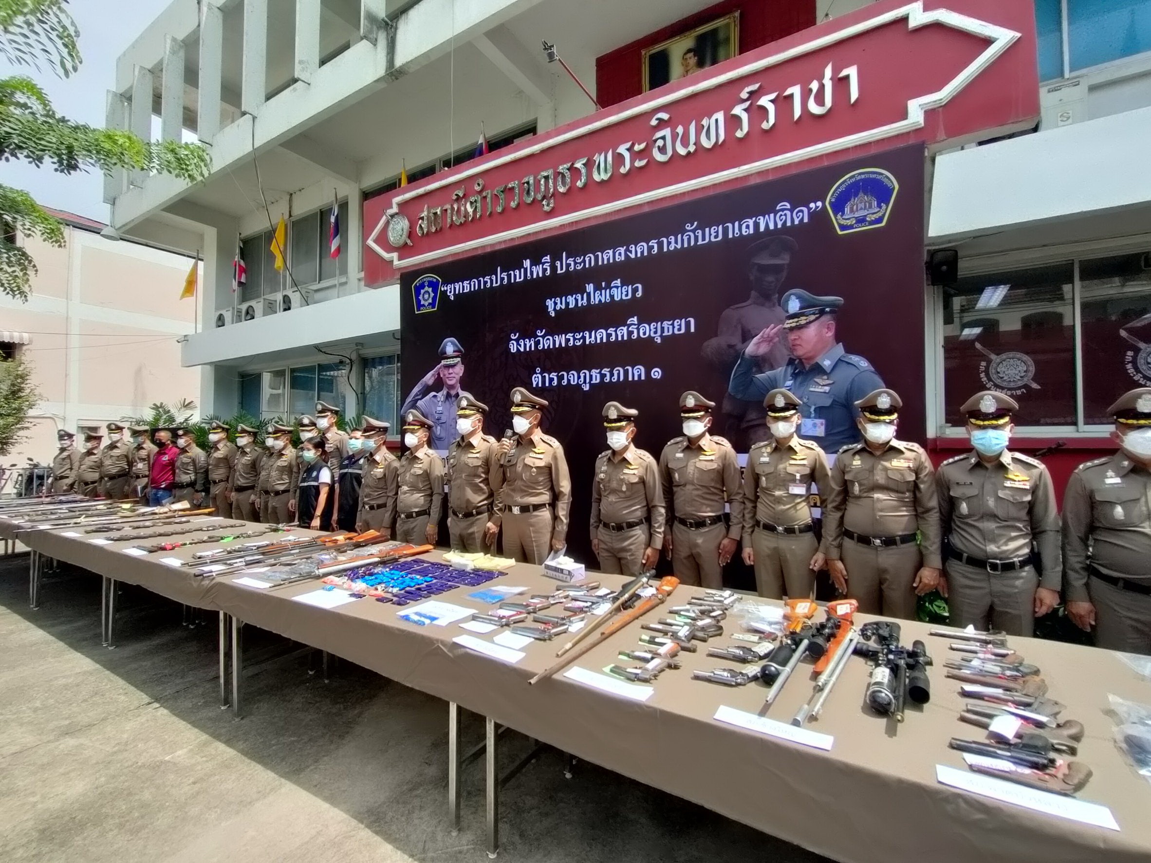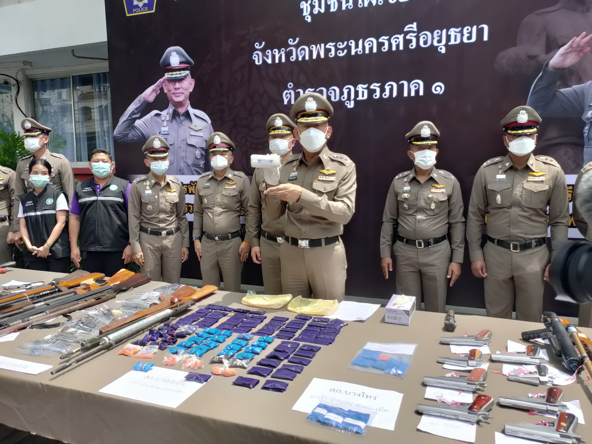 ตำรวจอยุธยา เปิดยุทธการ ปราบไพรี ตรวจยึดยาบ้ากว่า 50,000 เม็ด อาวุธปืน 100 กว่ากระบอก