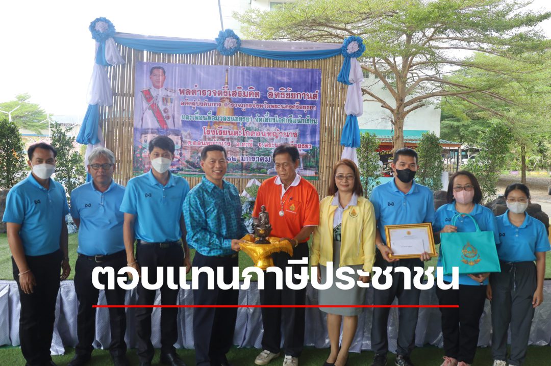ที่โรงเรียนวัดดอนหญ้านาง อ.ภาชี จ.พระนครศรีอยุธยา พล.ต.ต.เสริมคิด สิทธิชัยกานต์ อดีต ผบก.ภ.จว.พระนครศรีอยุธยา พ.ต.อ.ชัยรัชต์ รุ่งเรือง ผกก.สภ.ภาชี นายเผอิญ ไทยสม นายกสมาคมผู้สื่อข่าวหนังสือพิมพ์โทรทัศน์พระนครศรีอยุธยา พร้อมสมาชิก นายเกียรติยศ ศรีสกุล ประธานชมรมช่างภาพสื่อมวลชน พระนครศรีอยุธยา พร้อมสมาชิก ร่วมกัน นำไอศกรีมมาเลี่ยงให้กับเด็กนักเรียน