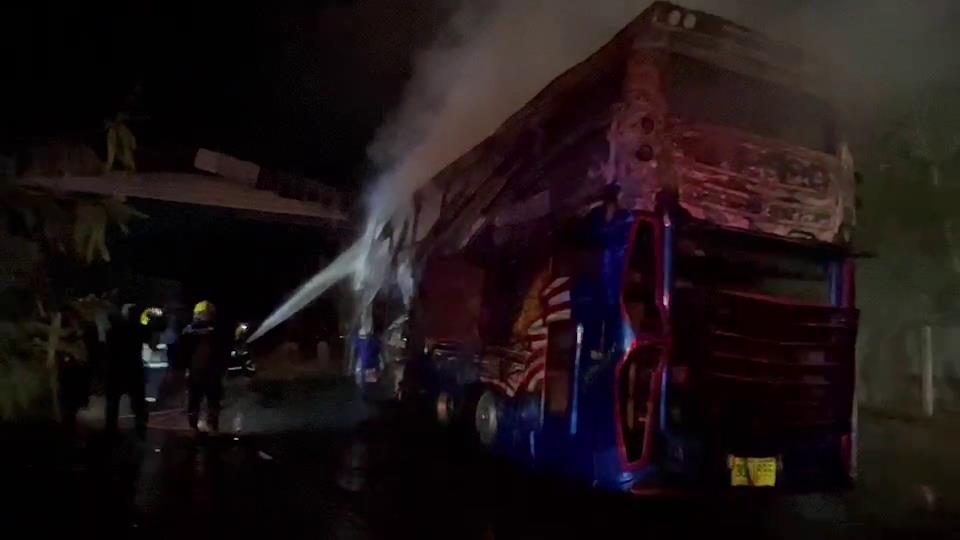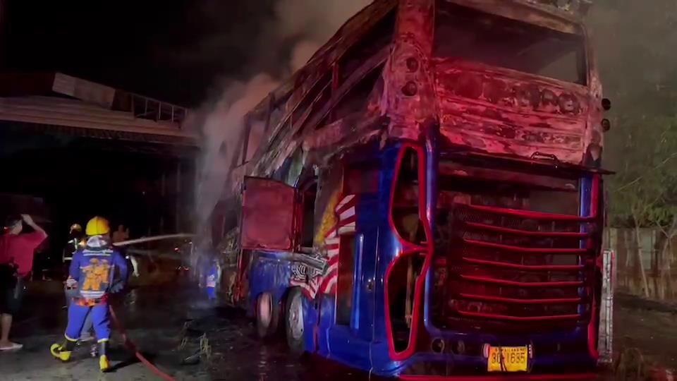 จากการตรวจสอบ พบว่าเพลิงลุกไหม้รถยนต์บัสเสียหายทั้งคัน ไฟหน้า ไฟท้าย ถูกถอดออกหมด โดยรถยนต์บัสคันดังกล่าวมีสภาพเก่า มีประชาชนให้ข้อมูลว่าพบเห็นรถยนต์บัสจอดทิ้งในบริเวณนี้มานานแล้ว