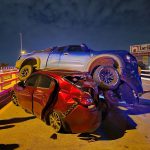 จากการตรวจสอบกล้องหลังรถ ของรถยนต์ที่วิ่งนำหน้าอยู่ เห็นรถยนต์เก๋งขับอยู่บนถนนช่องเลนที่ 2 พอถึงช่วงกลางสะพาน ได้มีรถยนต์กระบะ วิ่งตามหลังมา เสียหลัก พุ่งชน ท้ายรถยนต์เก๋ง เข้าอย่างแรงจนรถทั้ง 2 คันไถล แล้วรถยนต์กระบะเกยทับรถยนต์เก๋ง