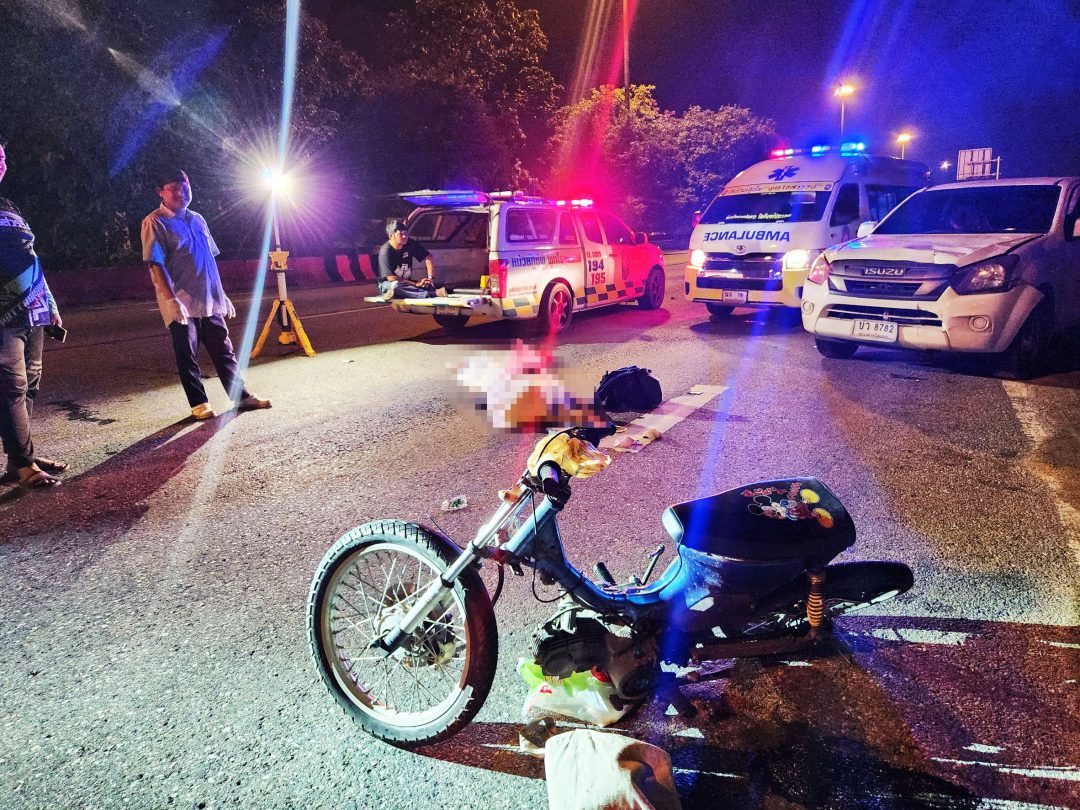 ในที่เกิดเหตุ พบผู้เสียชีวิต เป็นชาย 1 ราย สวมใส่เสื้อเสื้อวอร์มแขนยาวสีน้ำเงิน กางเกงยีนส์ขาสั้น สภาพมีบาดแผลฉกรรจ์ตามร่างกาย ตรวจสอบทราบชื่อผู้เสียชีวิต คือ บังเวียน แก้วกล่อม อายุ 55 ปี ชาวจังหวัดพิษณุโลก ใกลกันพบรถจักรยานยนต์ สภาพเก่าไม่ทราบรุ่น ไม่มีไฟท้าย ที่ด้านท้ายรถพังเสียหาย ใกล้กันยังพบรถยนต์กระบะ อีซูซุ สีขาว หน้ารถด้านซ้าย ฝากระโปรงยุบได้รับความเสียหาย หน้าตัวรถมีฝากระโปรงยุบได้รับความเสียหาย บนพื้นถนนก่อนจะถึงจุดเกิดเหตุพบ ร่องรอยเบรกมีคราบล้อยางรถ เป็นทางยาวกว่า 10 เมตร