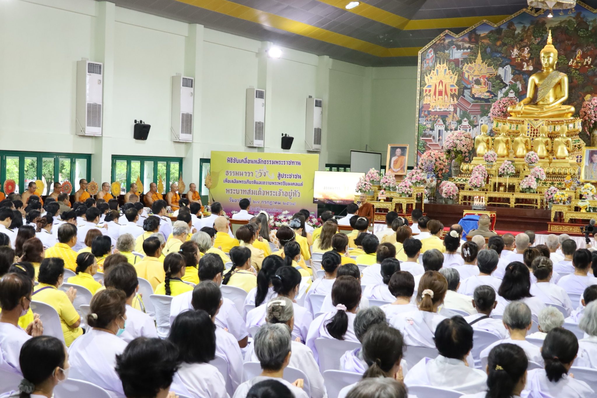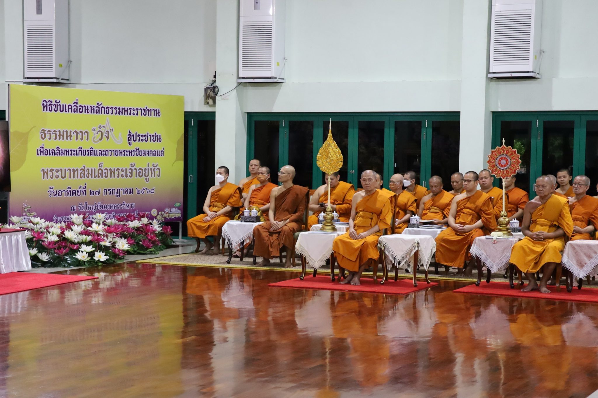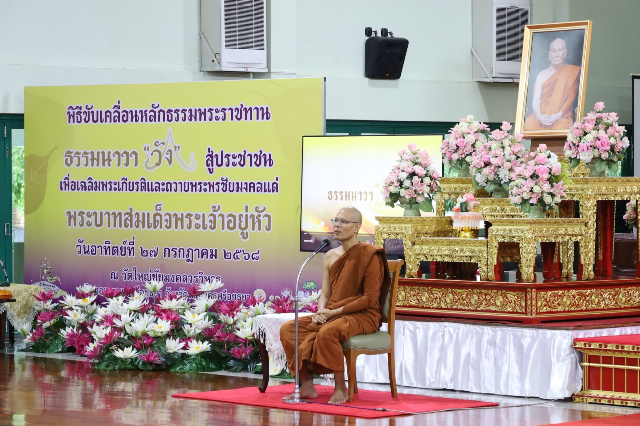 พระสงฆ์แสดงพระธรรมเทศนา เกี่ยวกับหลักธรรม “ธรรมนาวา วัง” ที่พระบาทสมเด็จพระเจ้าอยู่หัวทรงพระราชทานไว้ให้พุทธศาสนิกชนยึดถือเป็นแนวทางดำเนินชีวิต