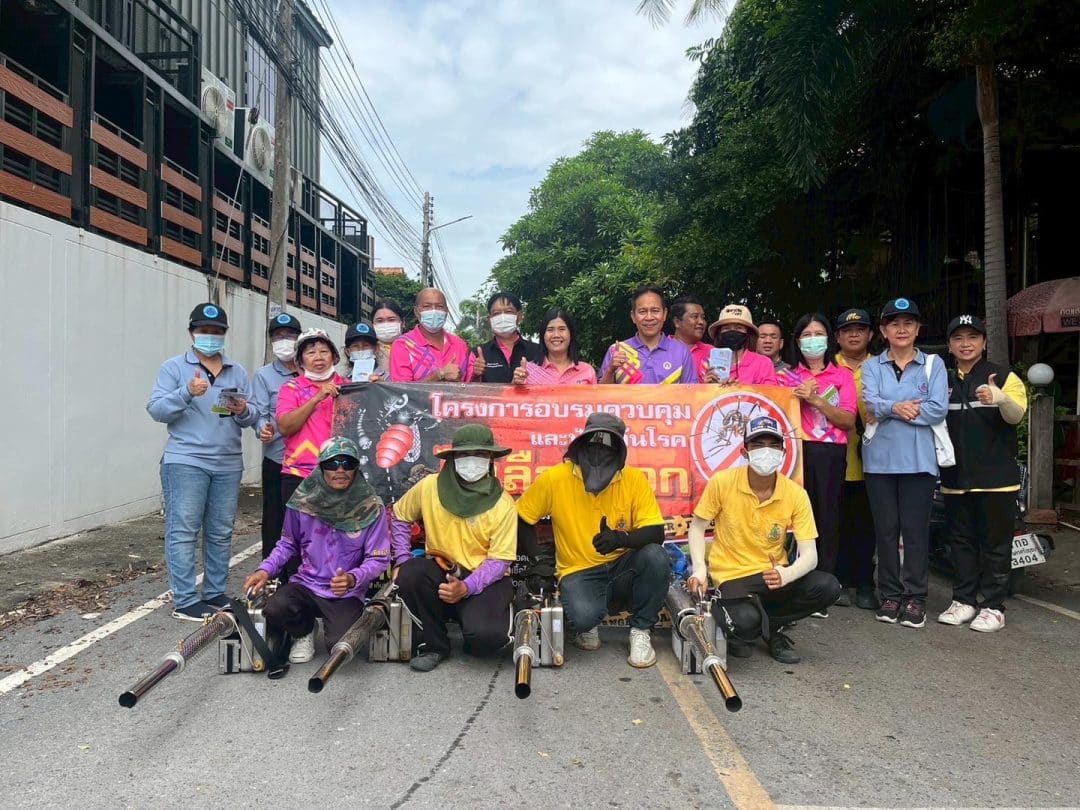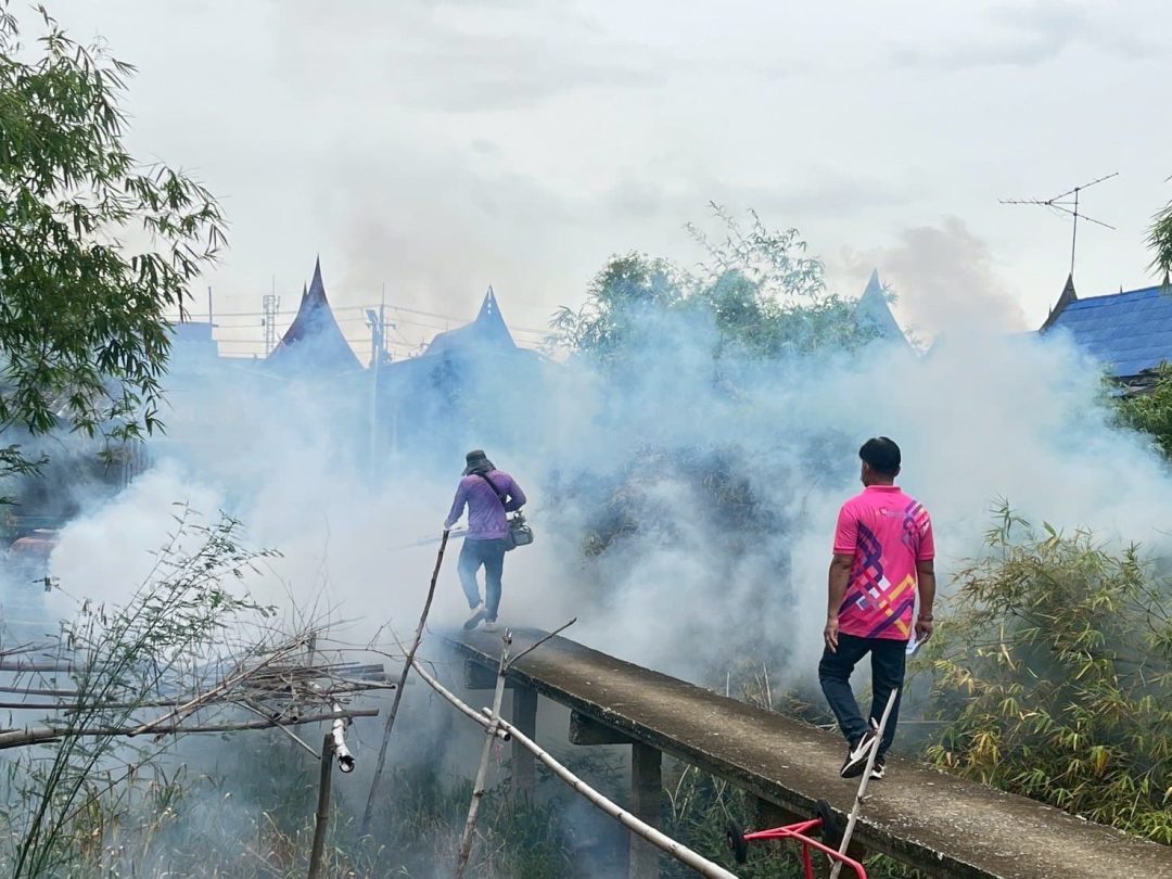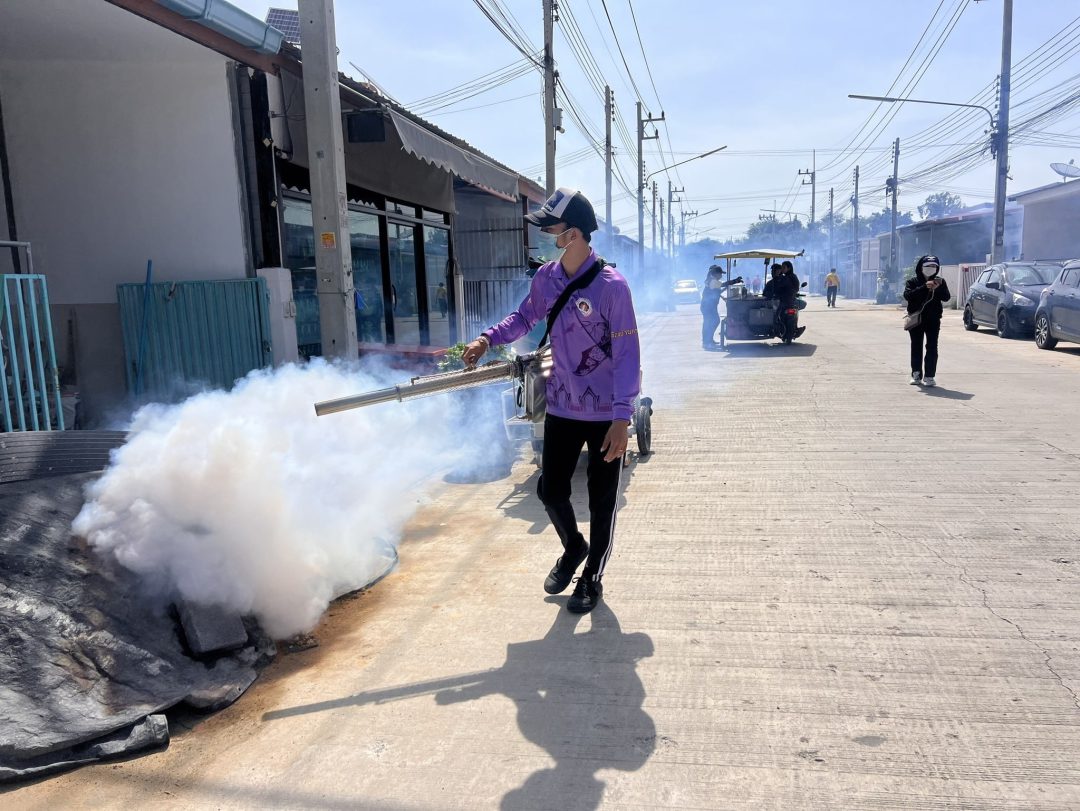 เทศบาลเมืองบ้านกรด อำเภอบางปะอิน จังหวัดพระนครศรีอยุธยา เดินหน้ากิจกรรมรณรงค์พ่นหมอกควันกำจัดยุงลาย เพื่อควบคุมและป้องกันการระบาดของโรคไข้เลือดออกในพื้นที่อย่างต่อเนื่อง