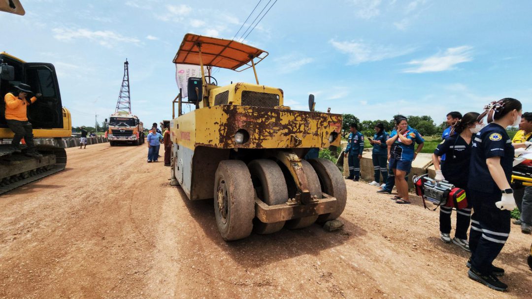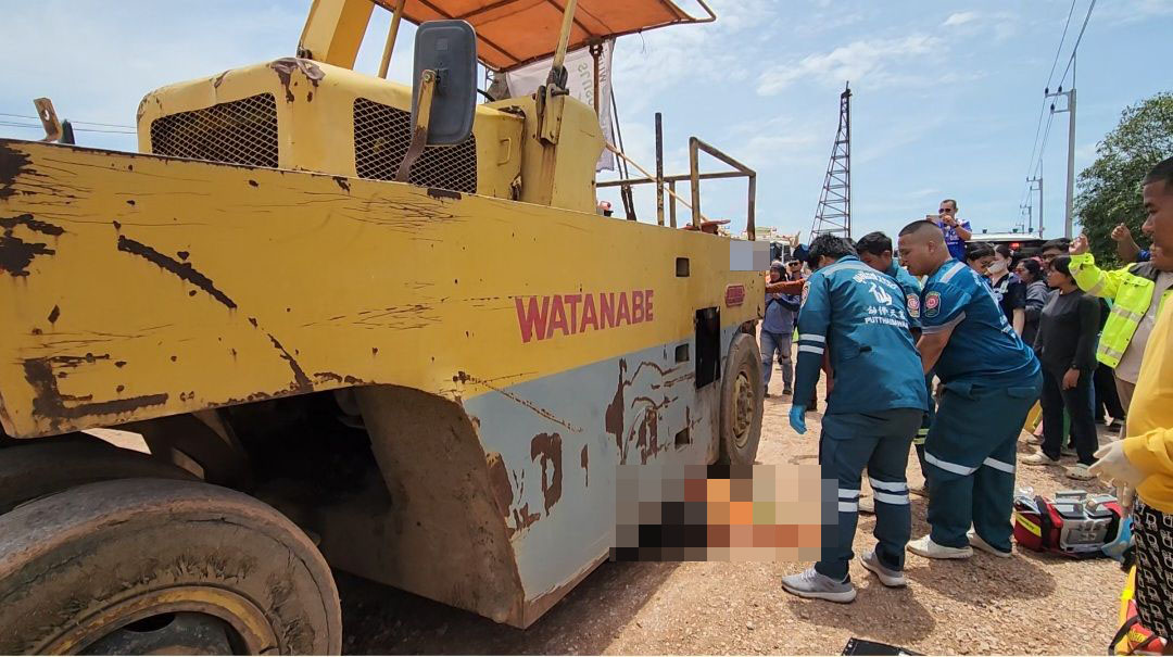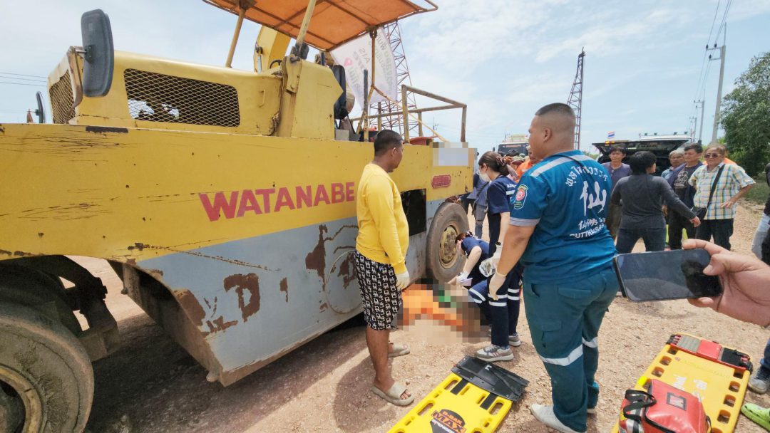 สยอง! รถบดถนนทับคนงานสาวดับคาที่ ขณะก้มถอดหมุด