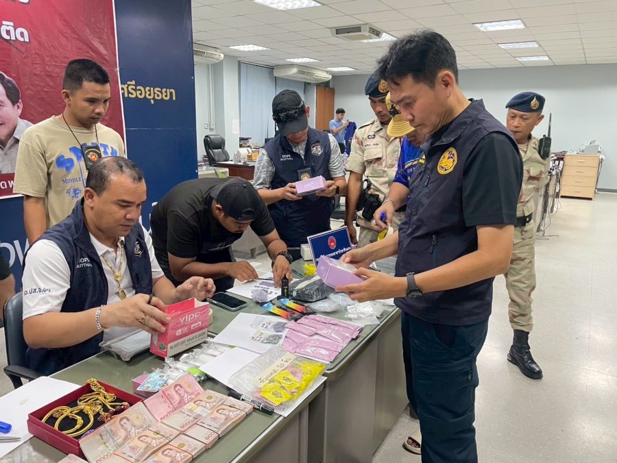 จ้าหน้าที่จึงรวบรวมของกลางพร้อมผู้ต้องหา ส่งพนักงานสอบสวน สภ.พระนครศรีอยุธยา ดำเนินคดี ข้อหา มียาเสพติดให้โทษประเภท 1 (ยาอีและแฮปปี้วอร์เตอร์) ไว้ในครอบครองเพื่อจำหน่ายโดยผิดกฎหมาย และ มีวัตถุออกฤทธิ์ต่อจิตประสาทประเภท 2 (คีตามีนและยาไฟว์ไฟว์และพ็อตเค) ไว้ในครอบครองเพื่อจำหน่ายโดยผิดกฎหมาย และข้อกล่าวหาครอบครองบุหรี่ไฟฟ้า