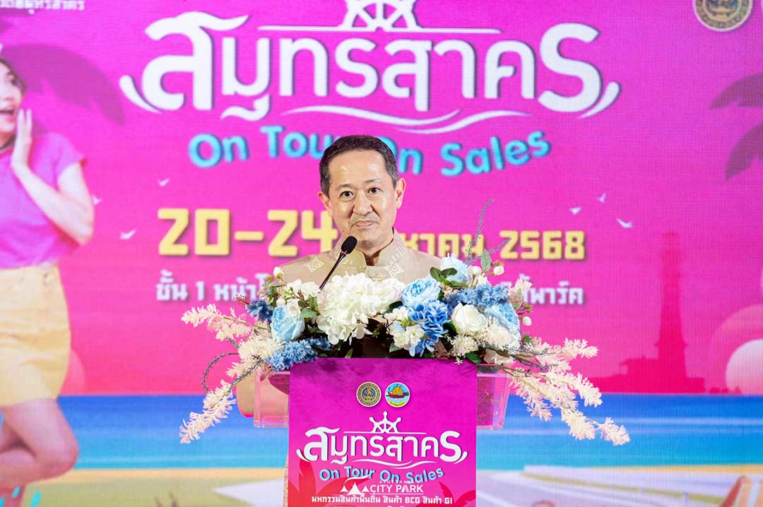 พร้อมหัวหน้าส่วนราชการ ร่วมเปิดงาน “สมุทรสาคร On Tour On Sales” จัดขึ้นระหว่างวันที่ 20 – 24 สิงหาคม 2568 การจัดงานครั้งนี้เป็นความร่วมมือของสำนักงานพาณิชย์จังหวัดสมุทรสาคร ยกสินค้าขึ้นชื่อกว่า 60 ร้านค้า