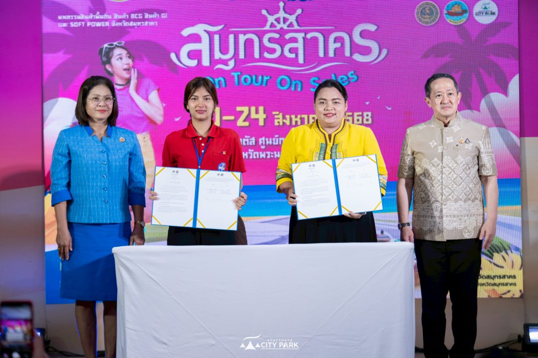 ผู้สื่อข่าวรายงานว่า เมื่อวันที่ 20 สิงหาคม 2568 ที่บริเวณชั้น 1 หน้าโลตัส ศูนย์การค้าอยุธยาซิตี้พาร์ค จ.พระนครศรีอยุธยา ร.ต.อ.เขตรัฐ ชาญศิลป์ รองผู้ว่าราชการจังหวัดสมุทรสาคร น.ส.สุวีรยา ปั้นปาน พาณิชย์จังหวัดสมุทรสาคร น.ส.สมาภรณ์ ครุฑธา ผู้จัดการแผนกการตลาด ศูนย์การค้าอยุธยาซิตี้พาร์ค