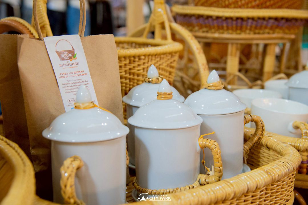ทั้งสินค้าเกษตร สินค้าเกษตรแปรรูป สินค้า GI สินค้า OTOP และอาหารทะเลแปรรูปจากจังหวัดสมุทรสาคร อาทิ มะพร้าวน้ำหอมบ้านแพ้ว ผลิตภัณฑ์จากมะพร้าว ไอศกรีมกะทิ มะพร้าวอ่อน น้ำตาลมะพร้าว ปลาทูซาเตี๊ยะ กุ้งแห้งคัดพิเศษ กะปิเคย อาหารทะเลแห้ง งานหัตถศิลป์ เครื่องเบญจรงค์ น้ำจิ้มสุกี้พันท้ายนรสิงห์ รวมถึงสินค้าอีกมากมาย