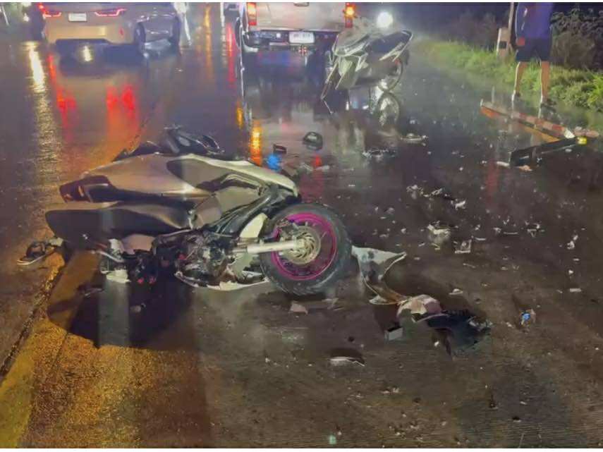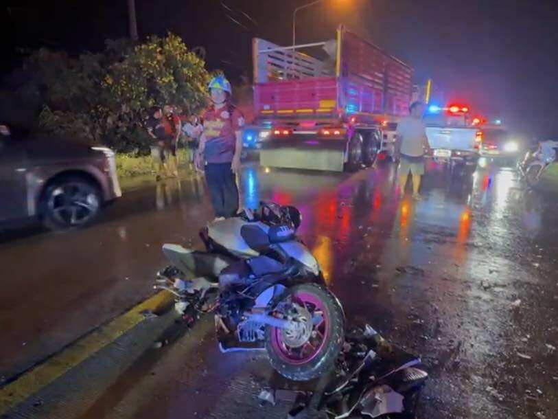 สลด! จยย. ขับหนีฝนตก ชนรถพ่วงเทรเลอร์ ดับ 2 ศพ มีเด็ก 15 ด้วย คนขับรถพ่วงหลบหนี