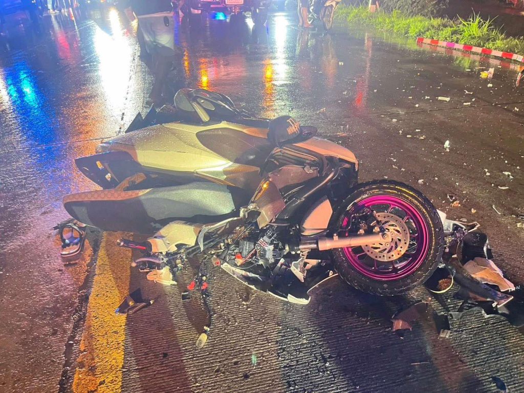 ที่เกิดเหตุพบ รถจักรยานยนต์ ฮอนด้า สีเทา ทะเบียน 2กก 4954 พระนครศรีอยุธยา สภาพพังยับเยิน ห่างออกไปประมาณ 10 เมตร พบร่างผู้เสียชีวิต 2 ราย ที่ถูกชนลากไป