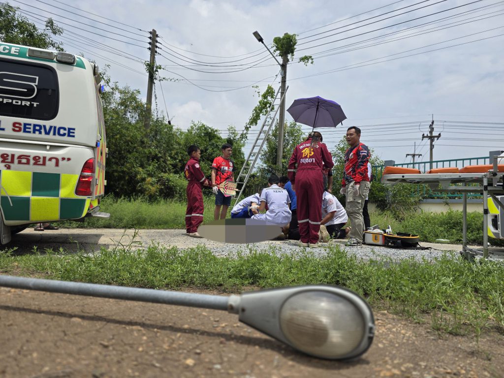 ที่เกิดเหตุพบนายนิพันธ์ อายุ 47 ปี นอนหมดสติอยู่บริเวณโคนเสาไฟ เจ้าหน้าที่เร่งทำการปั๊มหัวใจ (CPR) และประสานทีมแพทย์จากโรงพยาบาลเสนาเข้าช่วยเหลือ ก่อนนำส่งโรงพยาบาล แต่ผู้บาดเจ็บเสียชีวิตในเวลาต่อมา