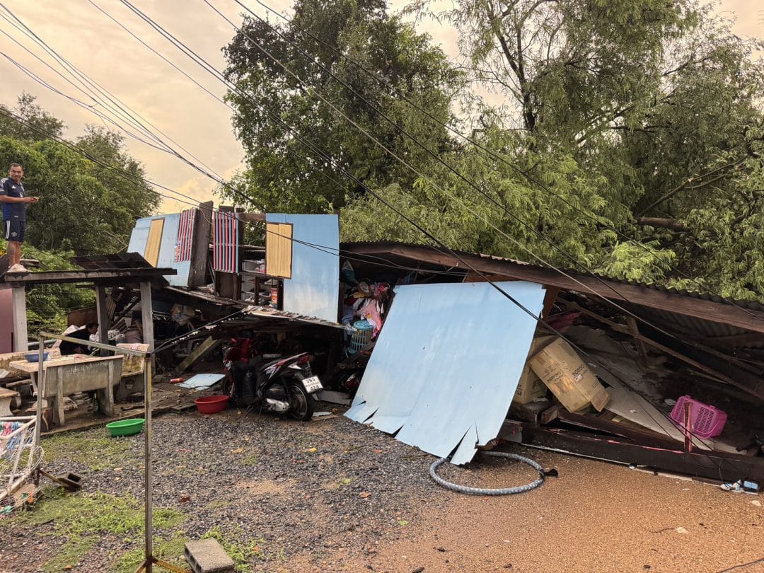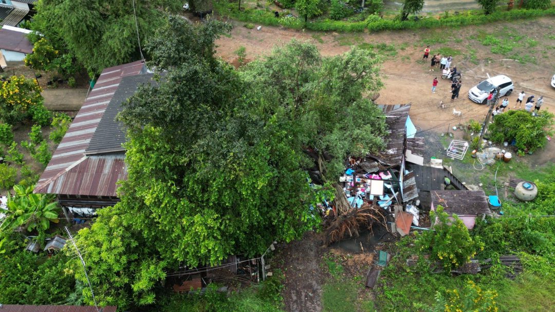 เมื่อเวลา 03.00น.วันที่ 3 ตุลาคม 2568 ผู้สื่อข่าวรายงานว่าในพื้นที่ของจังหวัดพระนครศรีอยุธยา เกิดเหตุลมกรรโชกแรงและฝนตกหนักจากอิทธิพลพายุ ส่งผลให้ต้นมะขามขนาดใหญ่ อายุกว่า 100 ปี ในพื้นที่หมู่ 3 ต.กระจิว อ.ภาชี โค่นล้มทับบ้านเลขที่ 103/1 ม.3 ต.กระจิว องภาชี จ.พระนครศรีอยุธยา ลักษณะบ้านไม้ชั้นเดียว นายธีรยุธ เฟื่องเงิน อายุ 51 ปี พังเสียหายทั้งหลัง ภรรยาและบุตร 2 คน รวม 4 คน ได้รับบาดเจ็บ ขณะเดียวกัน รถยนต์กระบะ 1 คัน และรถจักรยานยนต์ 2 คัน ที่จอดอยู่ใต้ถุนบ้านถูกพับเสียหาย