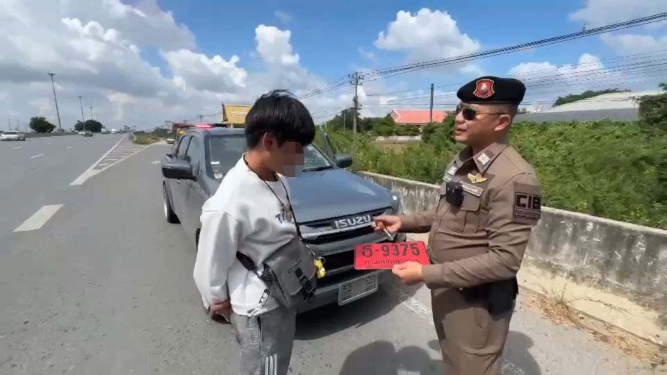 แจ้งข้อหาหนัก! หนุ่มติดป้ายแดงปลอม หวังหลบไฟแนนซ์ตามยึดรถ