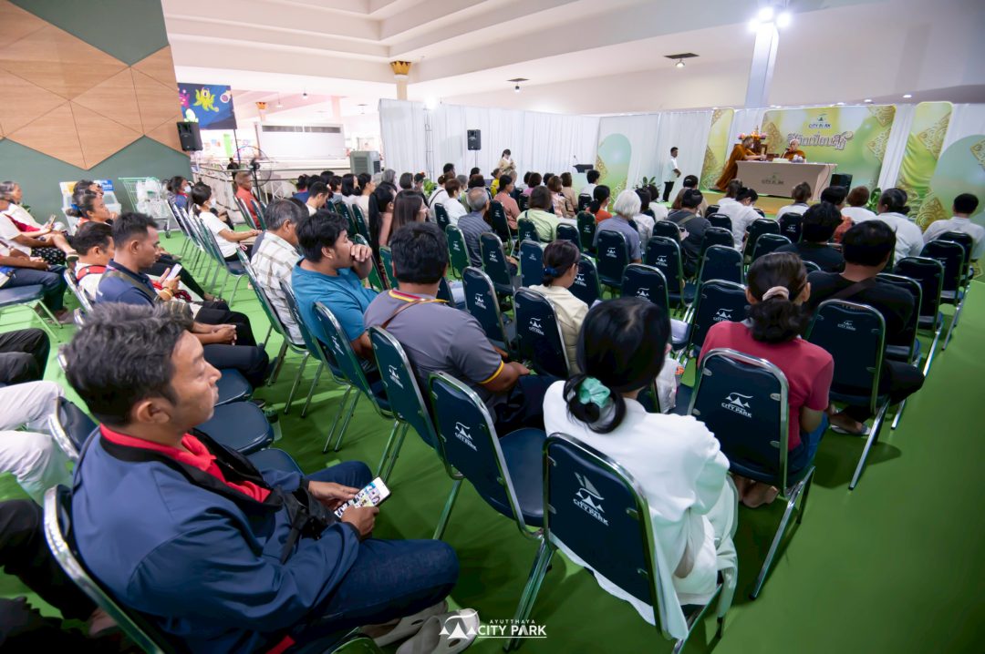 โดย มี ดร.ดร. สมพล รัชตพิมลชัย ประธานเจ้าหน้าที่บริหารการตลาด และเจ้าหน้าที่ศูนย์การค้าอยุธยาซิตี้พาร์ค พร้อมด้วย กัลยาณมิตรที่มาร่วมฟังพระธรรมเทศนาจากหลากหลายองค์กร อาทิ สำนักงานคุมประพฤติจังหวัดพระนครศรีอยุธยา, สำนักงานพระพุทธศาสนาจังหวัดพระนครศรีอยุธยา, สำนักงานวัฒนธรรมจังหวัดพระนครศรีอยุธยา, สำนักงานประกันสังคมจังหวัดพระนครศรีอยุธยา, ศูนย์พัฒนาการจัดสวัสดิการสังคมผู้สูงอายุวาสนะเวศม์ จังหวัดพระนครศรีอยุธยา และประชาชนทั่วไปร่วมงาน กว่า 100 คน