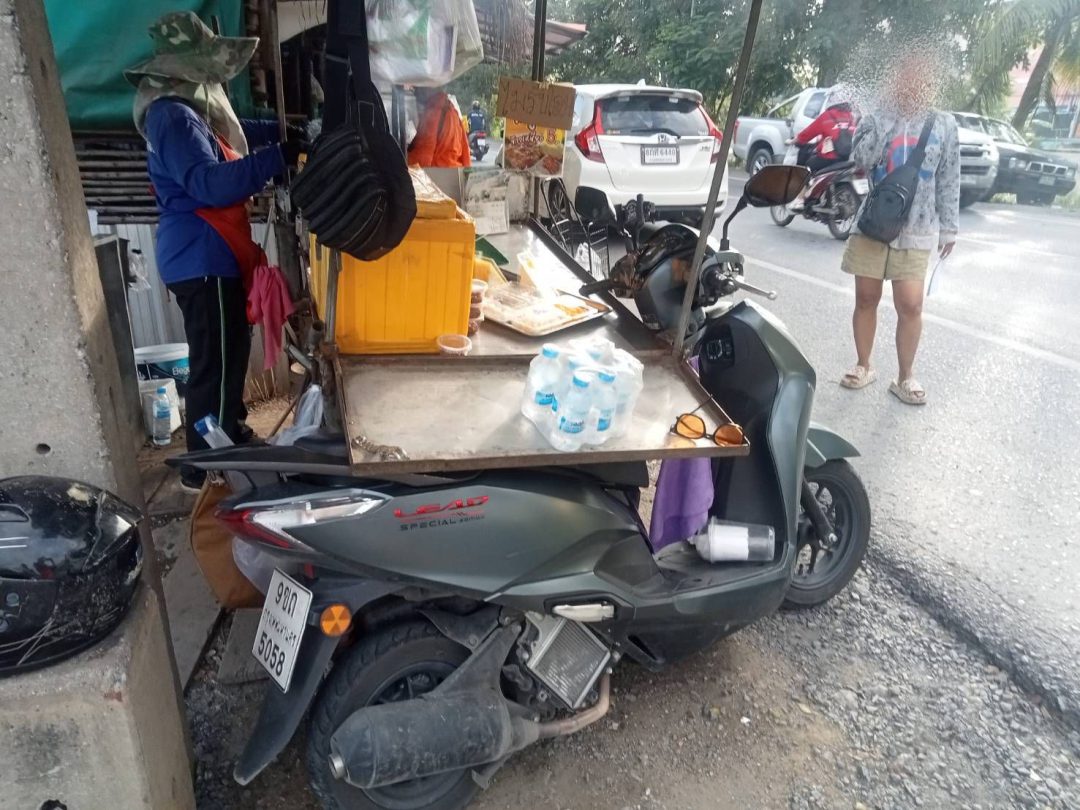 สอบถามนายสมภพ อายุ 40 ปี เจ้าของร้านหมูปิ้ง ซึ่งอยู่ในเหตุการณ์ เล่าว่า เหตุเกิดเวลาประมาณ 08.00 น. ขณะกำลังขายของ มีลูกค้าอยู่หน้าร้านหลายคน จู่ๆ ได้ยินเสียงเอะอะ ก่อนจะเห็นรถจักรยานยนต์จอดอยู่หน้าร้าน จากนั้นรถเก๋งฮอนด้าแจ๊ซสีขาว ปรากฏตามคลิป ที่มีผู้หญิงเป็นคนขับได้ถอยหลังออกถนน และพุ่งเข้าชนอย่างแรง จนทั้งคนและรถจักรยานยนต์กระเด็นมาชนแผงขายหมูปิ้ง ข้าวของกระจัดกระจาย ลูกค้าพากันวิ่งหนีตายกันจ้าละหวั่น โชคดีที่ไม่ถูกลูกค้าที่กำลังตั้งท้อง