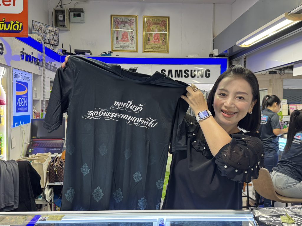 สาวเจ้าของร้านขายโทรศัพท์ น้ำใจงาม ทำเสื้อสีดำแจก สวมใส่ไว้ทุกข์ถวายความอาลัย