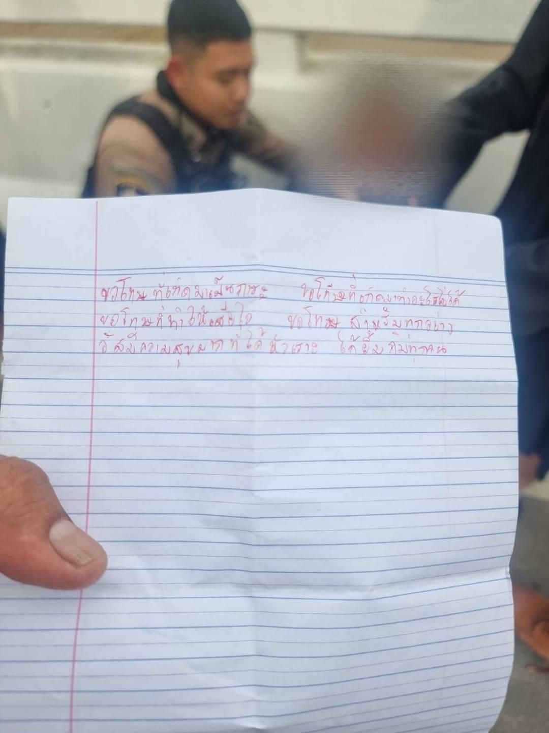 นอกจากนี้ เจ้าหน้าที่ตำรวจพบกระดาษสมุดเขียนด้วยปากกาน้ำหมึกสีแดง “ขอโทษที่เกิดมาเป็นภาระ ขอโทษที่เกิดมาทำอะไรไม่ได้ ขอโทษที่ทำให้เสียใจ ขอโทษสำหรับทุกอย่าง ผมมีความสุขมากที่ได้หัวเราะ ได้ยิ้มกับทุกคน”