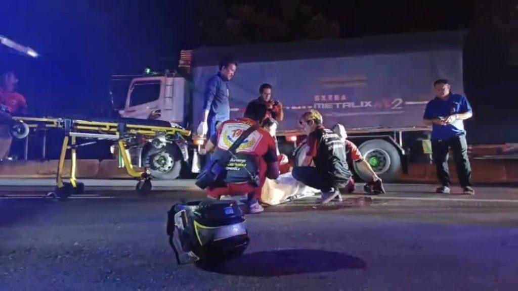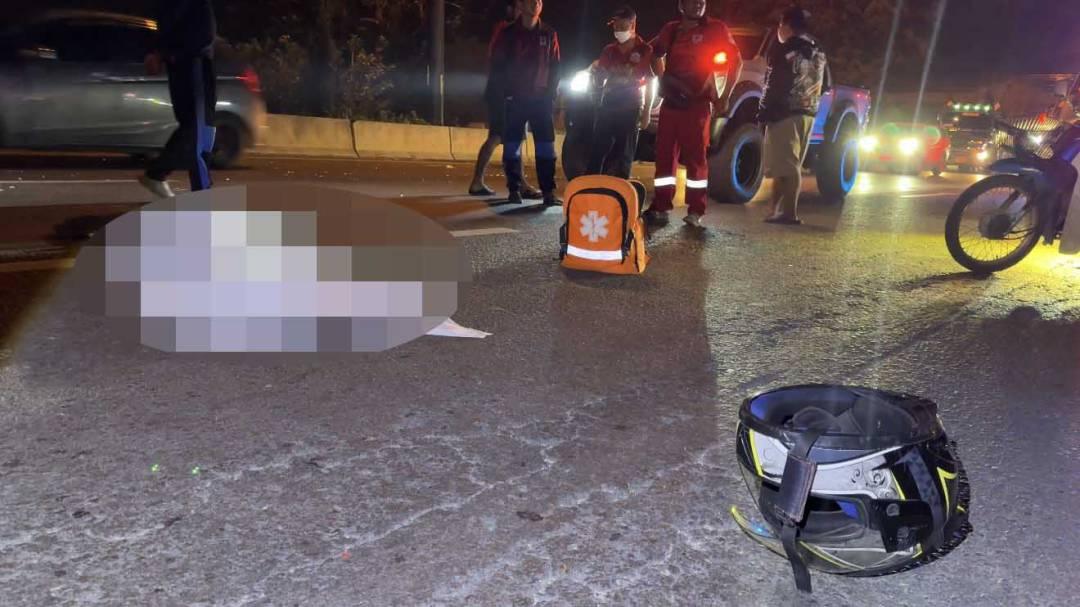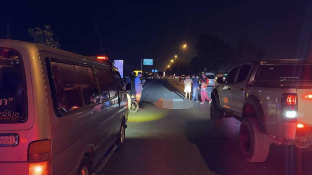 สลด! ชาย 45 ปี ขี่ จยย. ชนท้ายปาเจโร่ล้มกลางเอเชีย รถตู้เบรกไม่ทันทับร่างซ้ำเสียชีวิต