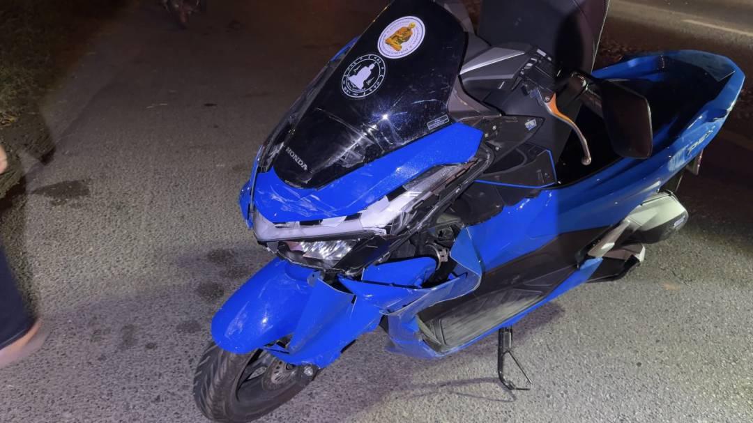 ที่เกิดเหตุพบรถจักรยานยนต์ฮอนด้า พีซีเอ็กซ์ สีน้ำเงิน ล้มคว่ำอยู่กลางถนน สภาพด้านหน้าพังยับเยิน ใกล้กันพบศพชาย 1 ราย ทราบชื่อ นายประพนธ์ พรรณกมล อายุ 45 ปี ชาว ต.บ้านเลน อ.บางปะอิน จ.พระนครศรีอยุธยา สภาพศีรษะและร่างกายมีบาดแผลฉกรรจ์ หมวกกันน็อกตก อยู่บนพื้นถนน