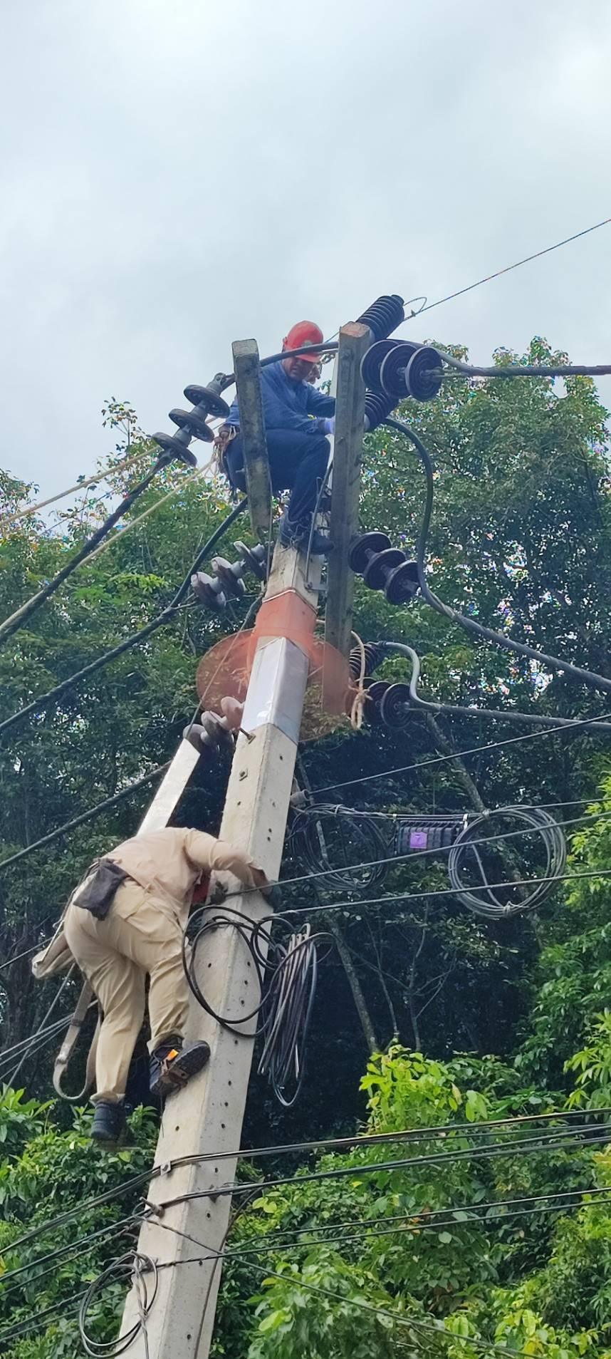 2. ซ่อมแซมแก้ไขระบบจำหน่ายแรงสูงที่ได้รับความเสียหายจากดินสไลด์พร้อมดำเนินการตัดต้นไม้ที่หักพาดระบบแรงสูง เร่งปฏิบัติการต่อเนื่องจนกว่าจะแล้วเสร็จ บริเวณเส้นทางหาดใหญ่-นาหม่อม-จะนะ