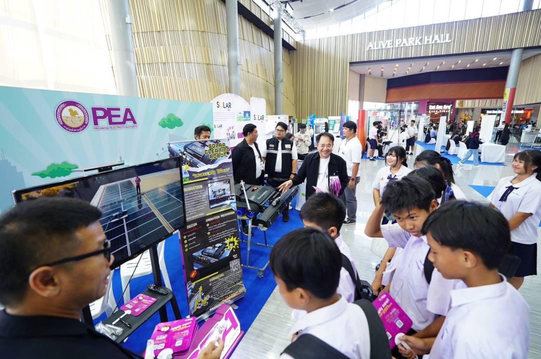 ผู้สื่อข่าวรายงานว่า ที่ศูนย์การค้า ฟิวเจอร์พาร์ค รังสิต จังหวัดปทุมธานี นายยุทธนา ครุฑกาศ ผู้อำนวยการฝ่ายวิศวกรรมและบริการ การไฟฟ้าส่วนภูมิภาค เขต 1 (ภาคกลาง) จังหวัดพระนครศรีอยุธยา พร้อมด้วย นายปรีดา แตงสาขา ผู้จัดการการไฟฟ้าส่วนภูมิภาคจังหวัดปทุมธานี ได้นำคณะผู้บริหารและทีมงานเข้าร่วมงาน “Rangsit Smart City 2025” เพื่อจัดแสดงนวัตกรรมและเทคโนโลยีด้านพลังงานไฟฟ้า (Solar Cleaning Robot) หุ่นยนต์ล้างแผงโซล่าเซลล์อัจฉริยะ ที่มุ่งเน้นการพัฒนาระบบไฟฟ้าให้มีประสิทธิภาพ มั่นคง และเป็นมิตรต่อสิ่งแวดล้อม สอดคล้องกับวิสัยทัศน์ของเมืองรังสิตในการเป็น Smart City PEA โชว์ศักยภาพ Smart Grid ในงาน Rangsit Smart City 2025 ย้ำความพร้อมระบบไฟฟ้าเพื่อเมืองอนาคต ระหว่างวันที่ 3 – 7 ธันวาคม 2568