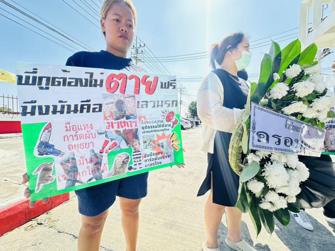 โดยญาติ ขนโลงศพ พวงหรีด ภาพถ่าย ผู้เสียชีวิต พร้อมแผ่นป้ายเรียกร้องให้ เจ้าหน้าที่ตำรวจเร่งรัดติกตามจับกุมคนร้าย อีก 1 คน คือ นายคัจฉภัค ยังใจ หรือ “เต้” อายุ 41 ปี ที่ยังหลบหนีมาดำเนินคดี เกรงจะเกิดอันตรายเพราะคนร้ายยังหลบหนี เนื่องจากคดีมีความโหดเหี้ยมและสร้างความสะเทือนใจ