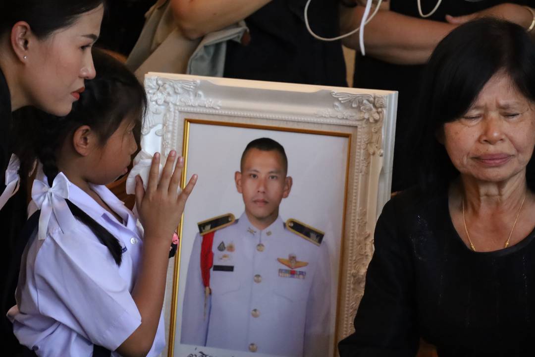 ส่วนบรรยากาศ ที่ศาลากลางวัดหลวงพ่อเขียว เป็นไปด้วยความโศกเศร้า นายตี๋ แก้วกระจ่าง อายุ 67 ปี พ่อจ่าสิบเอก ดำรงเกียรติ นางรวีวรรณ แก้วกระจ่าง อายุ 65 ปี นางสาวสุนีย์ โตปานวงศ์ อายุ 43 ปี ภรรยา ลูกสาว และญาติ อยู่ในอาการเศร้าโศกเสียใจ ลูกสาวนั่งเช็ดรูป หอมแก้มพ่อจากรูปตลอดเวลา ด้วยความคิดถึง พร้อมกับเขียนข้อความในรูป
