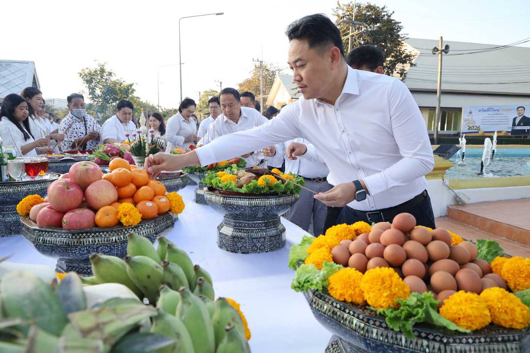 เมื่อวันศุกร์ที่ 26 ธันวาคม 2568 รองศาสตราจารย์ ดร.ประมุข อุณหเลขกะ อธิการบดีมหาวิทยาลัยเทคโนโลยีราชมงคลสุวรรณภูมิ มอบหมายให้ผู้ช่วยศาสตราจารย์ ดร.ภาสพิรุฬห์ วัชรศรีสำเริง เป็นประธานในพิธีบวงสรวงพระพิรุณ ประจำปี 2568 พร้อมด้วยผู้บริหาร คณาจารย์ บุคลากร และนักศึกษา เข้าร่วมพิธีอย่างพร้อมเพรียง