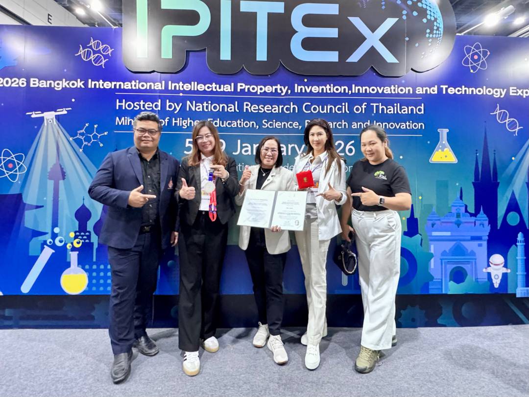 ผลงานดังกล่าวได้รับรางวัลจากการประกวดและจัดแสดงนวัตกรรมในงาน วันนักประดิษฐ์ 2569 (Thailand Inventors’ Day 2026) และมหกรรมสิ่งประดิษฐ์และนวัตกรรมนานาชาติ IPITEx 2026 ซึ่งจัดขึ้นระหว่างวันที่ 5–9 มกราคม 2569 ณ ศูนย์นิทรรศการและการประชุมไบเทค บางนา กรุงเทพมหานคร โดยสำนักงานการวิจัยแห่งชาติ (วช.)