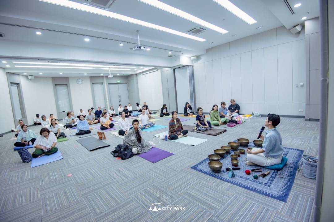 กิจกรรมจัดขึ้นที่ชั้น 2 ห้อง Meeting Room 5–6 ภายในศูนย์การค้า โดยได้รับเกียรติจาก ครูบิ๊ก – จิตตินันท์ นันทไพบูลย์ นักเยียวยาคลื่นเสียงบำบัด และผู้เชี่ยวชาญด้านการฝึกสติจาก Bangkok Sound Healing ถ่ายทอดความรู้และนำเวิร์กชอป “Singing Bowl” ใช้ความถี่จากขันทิเบตช่วยผ่อนคลายความเครียด ลดความวิตกกังวล และส่งเสริมคุณภาพการนอนหลับ