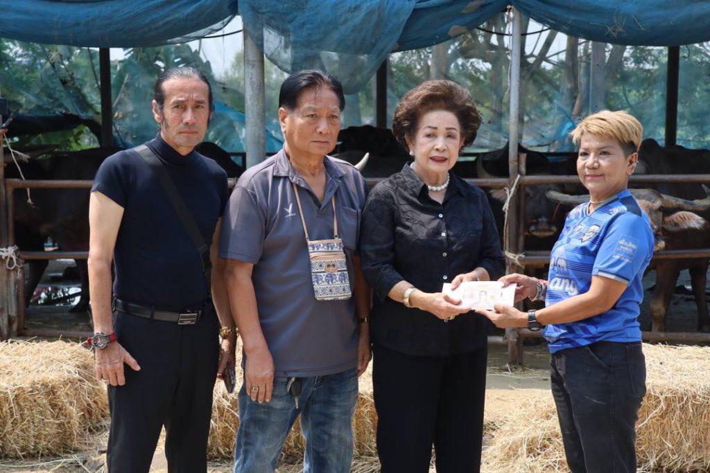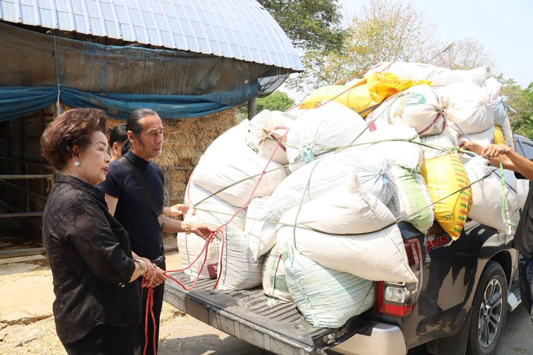 ล่าสุดนางสมทรง พันธ์เจริญวรกุล พันธ์เจริญวรกุล และ ชัชชัย กิตติชัย พร้อมผู้ใจบุญได้ร่วมกันลงขันนำเงินไปซื้อข้าวโพดหมักสด จำนวน 300 ถุง มามอบให้วัว และควายกินเป็นมื้อแรกในวันนี้ หลังไม่ได้กินอาหารที่มีคุณค่ามานานนับเดือน
