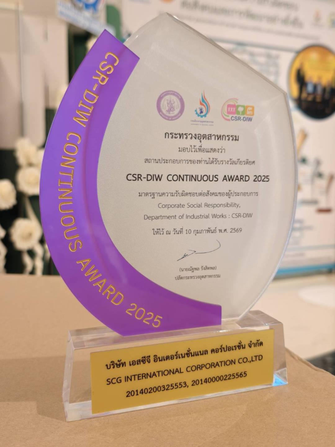 ทั้งนี้ รางวัล CSR-DIW Continuous Award ถือเป็นเครื่องยืนยันถึงความสำเร็จของภาคอุตสาหกรรมในการยกระดับมาตรฐานความรับผิดชอบต่อสังคม และมีส่วนสำคัญในการขับเคลื่อนอุตสาหกรรมไทยให้เติบโตอย่างมั่นคงและยั่งยืนในระยะยาว