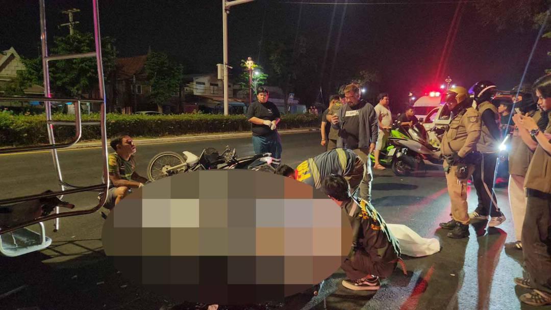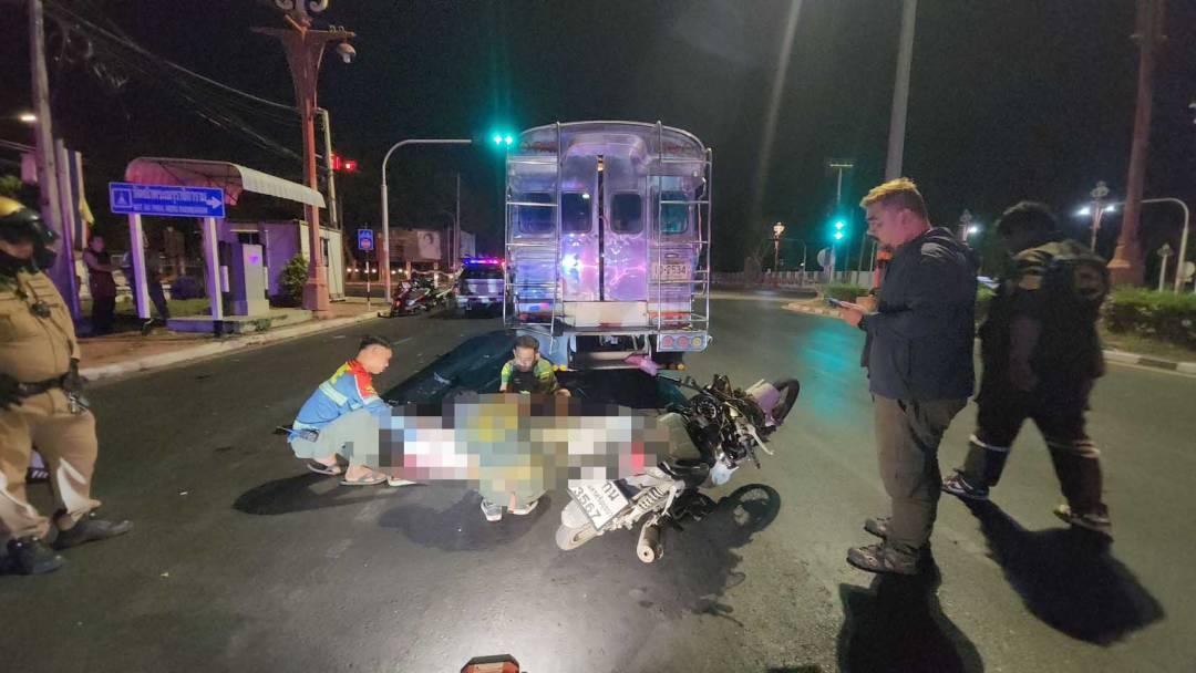 หนุ่มขี่ จยย. พุ่งชนท้ายสองแถว ดับกลางแยกไฟแดงอยุธยา