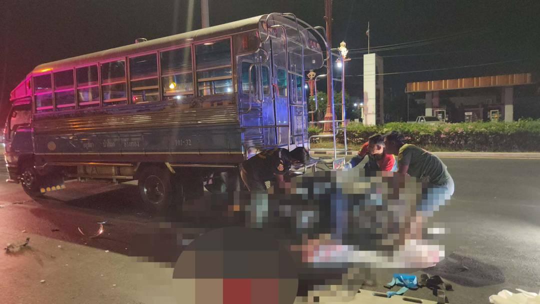 หนุ่มขี่ จยย. พุ่งชนท้ายสองแถว ดับกลางแยกไฟแดงอยุธยา