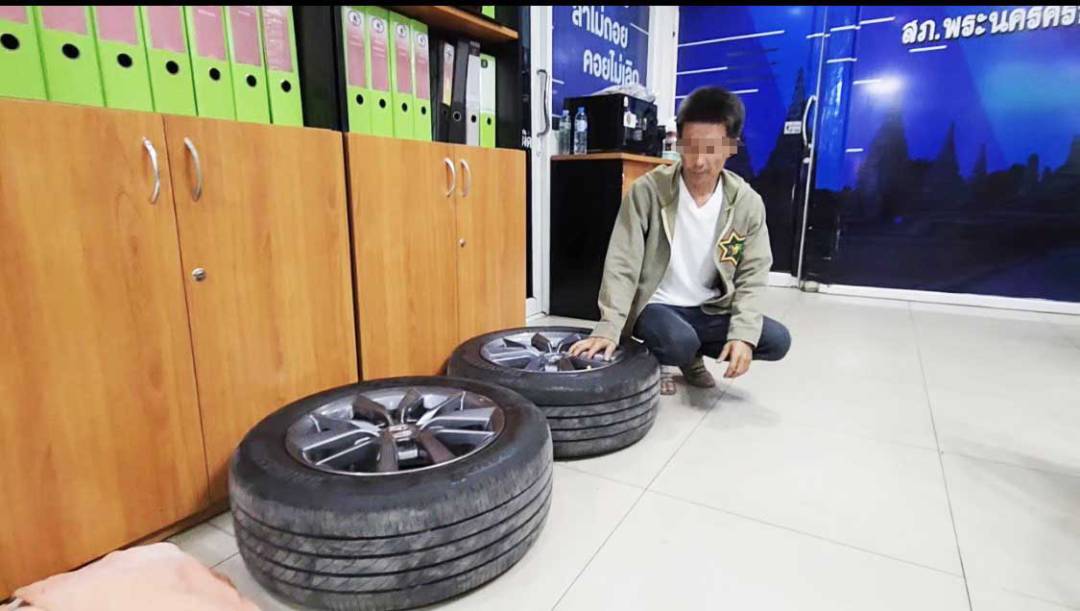 ตำรวจรจับแล้วโจรลักล้อเก๋ง อ้างนึกว่ารถถูกทิ้ง เห็นคลิปตกใจรีบไปซื้อจะคืนเจ้าของ