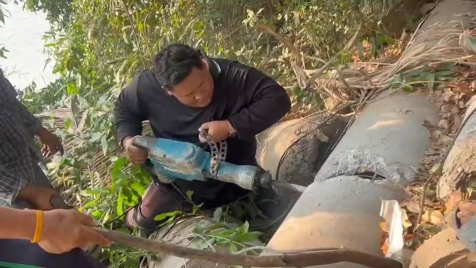 พบท่อระบายน้ำ แบบคอนกรีตเสริมเหล็กขนาด 50 เซนติเมตร บางส่วนมีดินทับบางส่วนท่อโผล่พ้นผิวดิน ความยาวประมาณ 5 เมตร ชาวบ้านและเจ้าหน้าที่กู้ภัยใช้เครื่องเจาะปูนเจาะท่อระบายน้ำ ให้มีอากาศระบายเข้าภายในท่อ เปิดพัดลมระบายอากาศลดอุณหภูมิภายในท่อ และเจาะช่วงกลางท่อเพื่อเปิดทาง เข้าช่วยเหลือนางประจวบ อายุ 81 ปี ที่ติดอยู่ในท่อ ในลักษณะนอนคว่ำหน้าภายในท่อ ตรวจสอบพบว่าเป็นท่อระบายน้ำที่ไม่ได้ใช้งาน ทำให้มีเศษดินอยู่ในท่อทำให้มีความแคบ