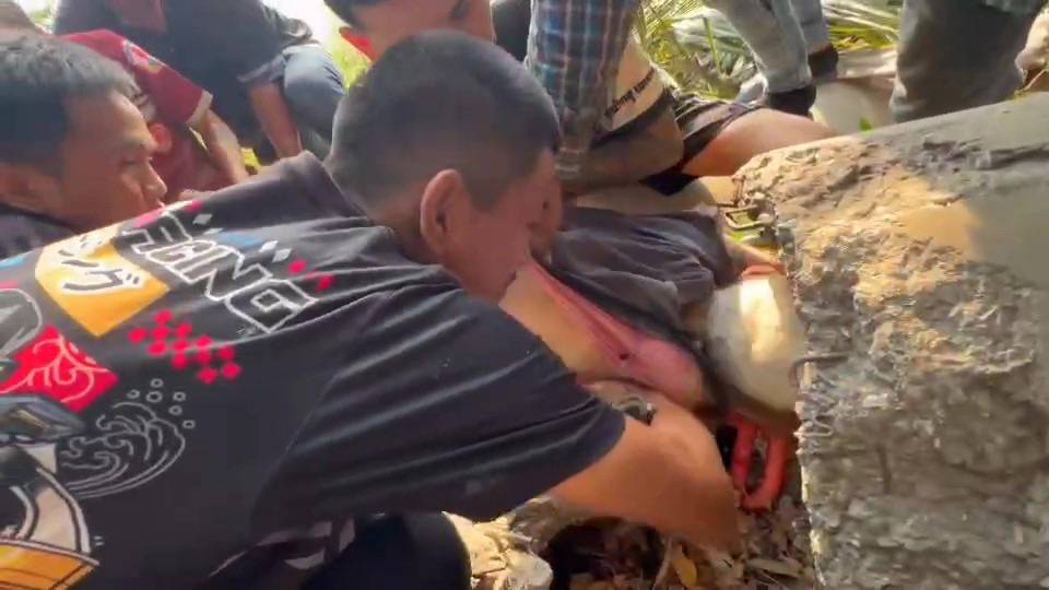 เจ้าหน้าที่กู้ภัยใช้วเวลาประมาณ 30 นาทีสามารถเจาะช่องช่วงกลางท่อกว้างประมาณ 50 เซนติเมตร ใกล้กับจุดที่ นางประจวบติดอยู่ จังหวะนั้นมีสุนัขยวิ่งสวนทางออกมา จากนั้นเจ้าหน้าที่กู้ภัยได้มุดตัวเข้าไปท่อ ค่อยๆดึงร่างของ นางประจวบออกมาจากท่อ อยู่ในสภาพหมดสติอิดโรย บาดแผลถลอกตามร่างกายช่วยเหลือนำส่งโรงพยาบาลสมเด็จพระสังฆราช ล่าสุดอาการปลอดภัย
